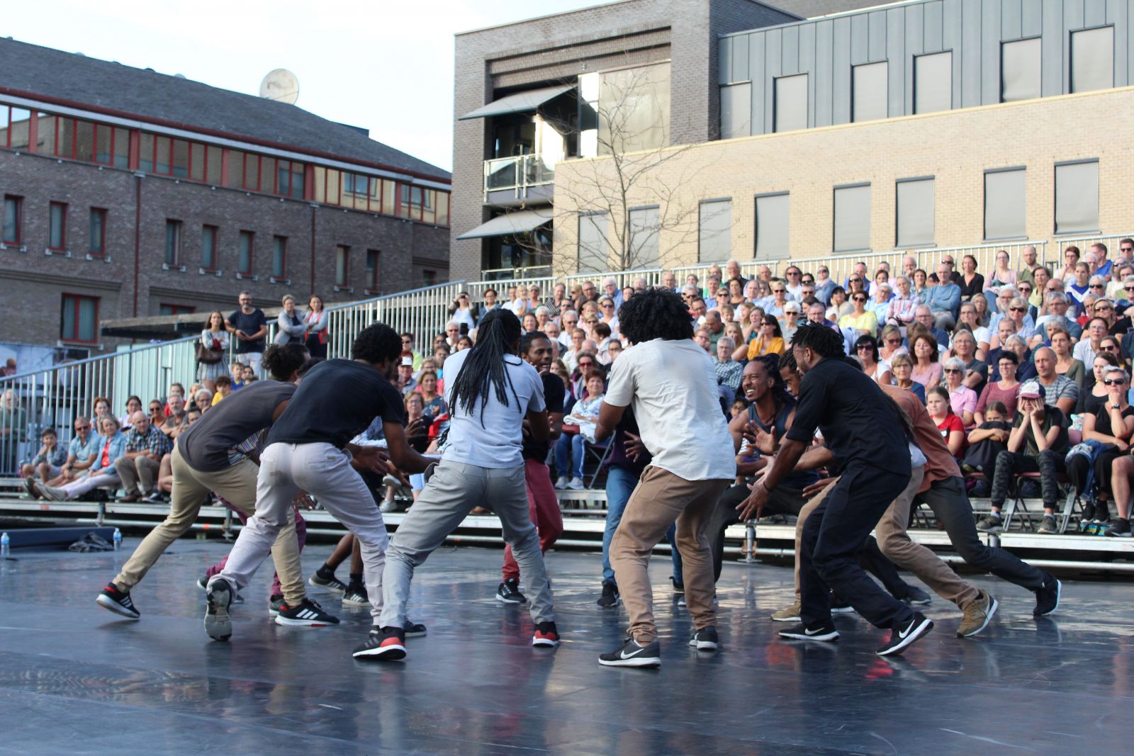 O Theater op de Markt Festival, em Hasselt, na Bélgica foi a primeira parada do Impacto na Europa. Foi neste grande festival do qual participam grupos de diversos países, que o Impacto realizou duas apresentações com enorme público, formado por crianças, jovens, adultos e idosos que vibraram ao ver a força e energia brasileiras, contagiando a todos os presentes. Susan que assistiu a Três Gritos com a família e já visitou o Brasil, disse que o espetáculo a transportou para as ruas do país. “Vi o sentimentos dos jovens brasileiros retratados através da dança”, comentou.