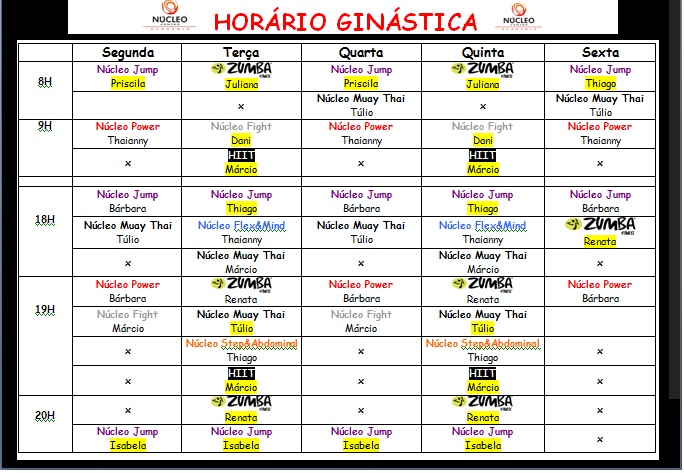 Aproveitando o embalo da volta às aulas, o Núcleo Academia apostou em novidades para os alunos, e a semana do dia 25 ao dia 29 está repleta delas. A primeira delas é o lançamento da nova modalidade de ginástica, o HIIT- High Intensity Interval Training, que em português significa Treinamento com Intervalos de Alta Intensidade. As aulas serão oferecidas às terças e quintas-feiras às 19h, começando nesta terça dia 26.